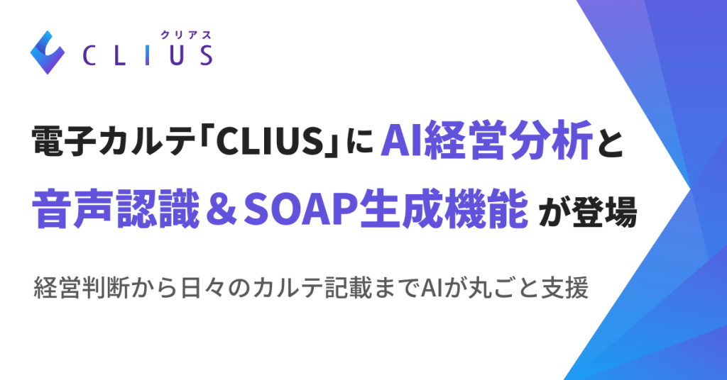 株式会社DONUTS(東京都渋谷区、代表取締役:西村啓成)が提供するクラウド型電子カルテ「CLIUS(クリアス)」は、クリニック経営を可視化・支援する「AI経営分析」と、診察中の会話をリアルタイムで