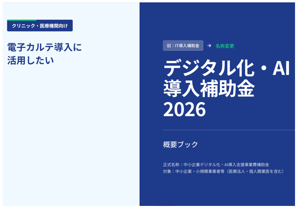 電子カルテ導入に活用したい「デジタル化・AI導入補助金」概要ブック